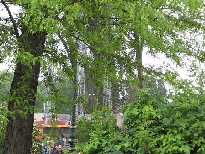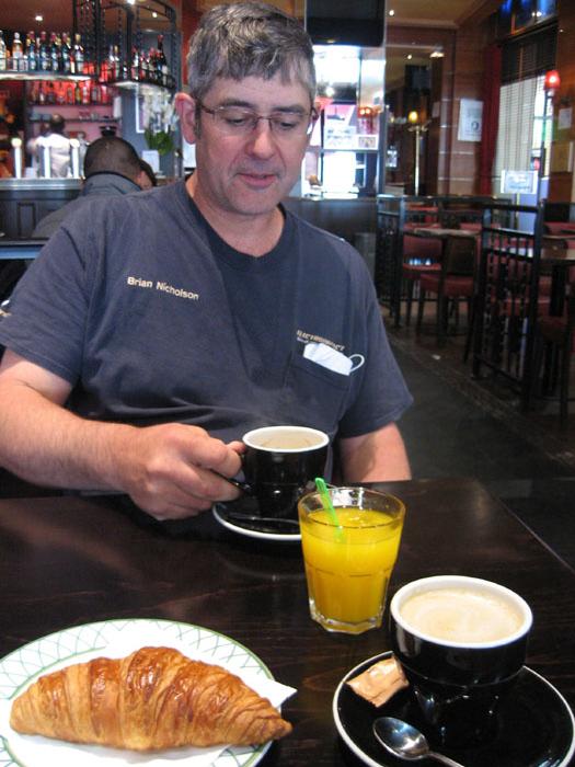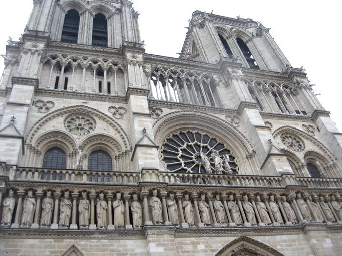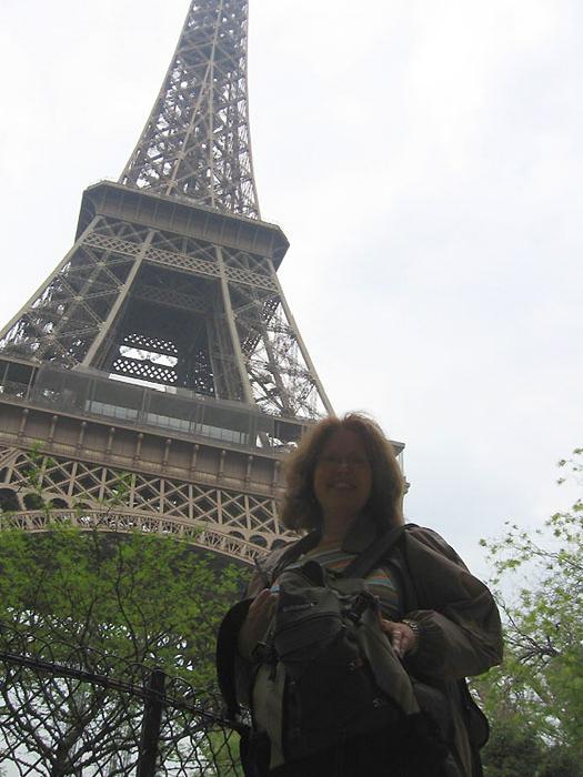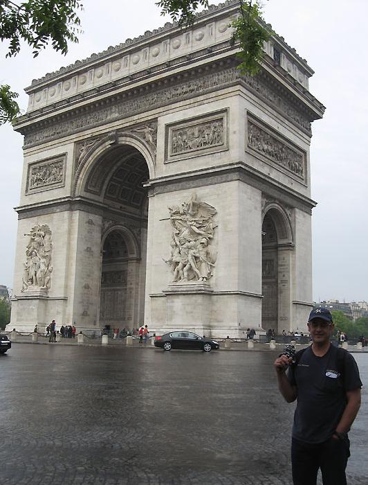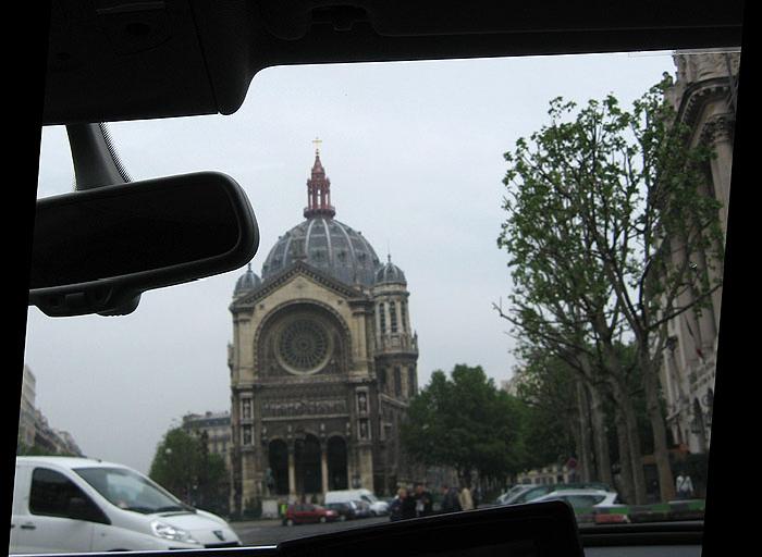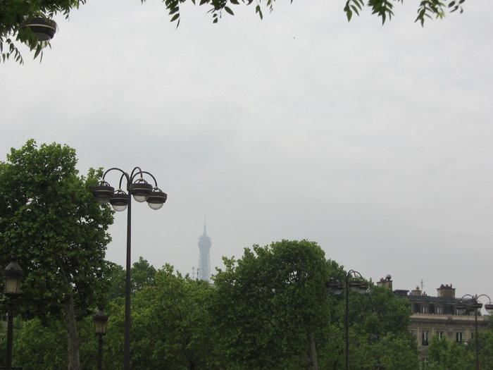 Within 15-20 minutes the rain went away, and we found it was easy to get cabs to the locations we wanted to hit, namely Notre Dame, the Arch di' Triomphe (sp?) and of course the Eiffel Tower. No time to climb stairs or explore, and the only glimpse of the Louve was from a speeding taxi, but we were able to duck inside for a croissant and café au lait on the Champs d' Elysses.